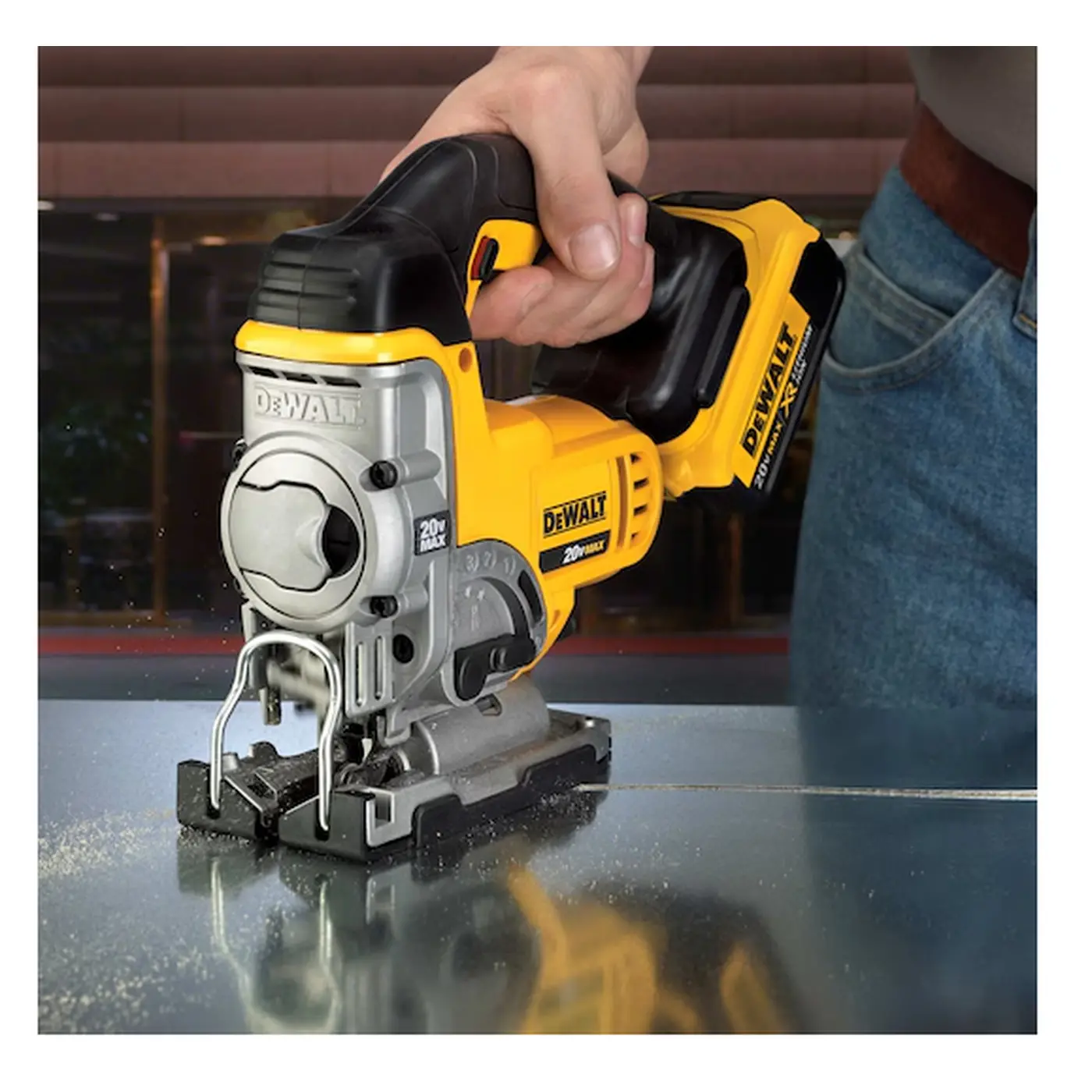 -Serra Tico-Tico é ideal para cortes curvos e retos em madeiras, metais e plásticos. Enquanto seu robusto motor com escovas de carvão substituíveis garante a potência da ferramenta, o mecanismo com contrapeso reduz a vibração, oferecendo assim mais comodidade ao usuário. Conta com engate rápido de encaixe universal para lâminas de qualquer tipo, assim como a sapata de ajuste rápido com paradas em ângulo 0°, 15°, 30° e 45° para ambos os lados e um soprador de pó ajustável. Indicada para grandes, médios ou pequenos esforços. Oferece comodidade com sua empunhadura emborrachada e seu interruptor com controle de velocidade variável com trava de segurança. Possui tecnologia 20V MAX Íon de Lítio, que combina baterias de íons de lítio com ergonomia.