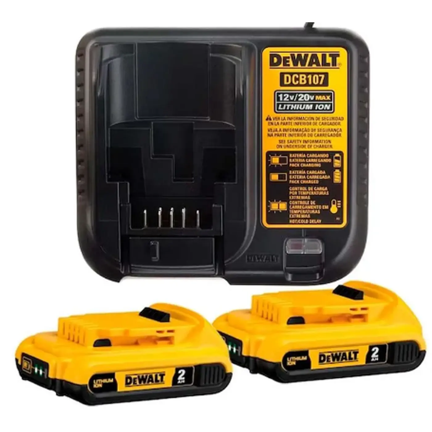 Kit de 2 Baterias 20V MAX 2Ah e Carregador bivolt 1,25Ah DEWALT DCB203C2-BR