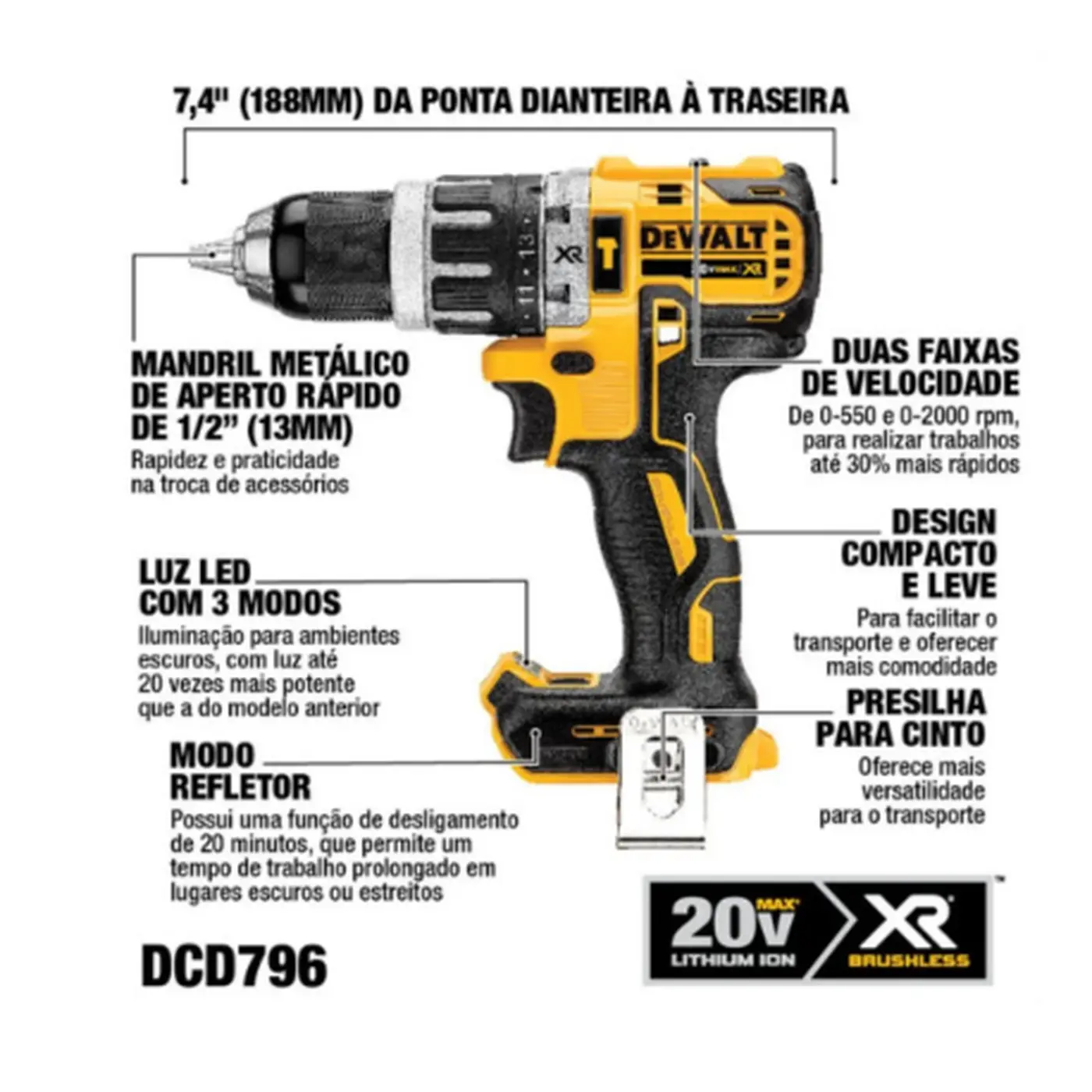 - Voltagem:20V MAX* V