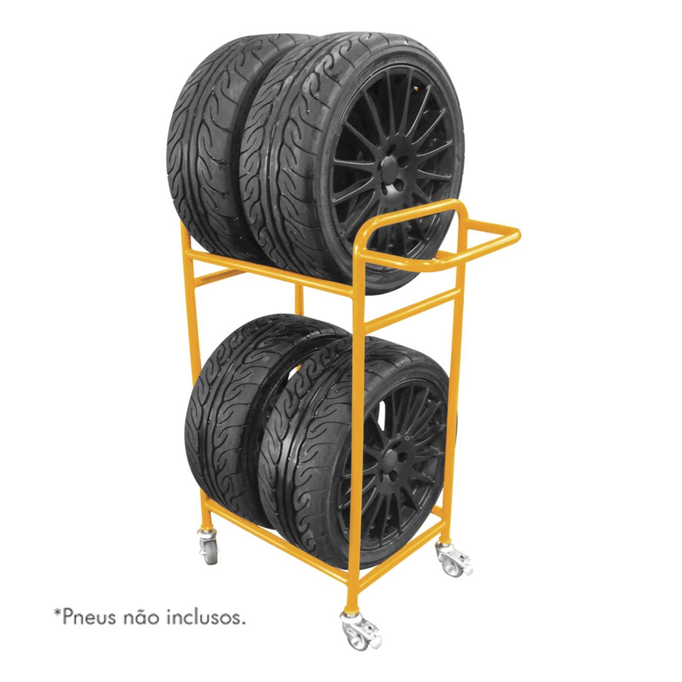 Carrinho metálico para transporte e armazenagem de pneus de automóveis. Produzido em material de alta qualidade