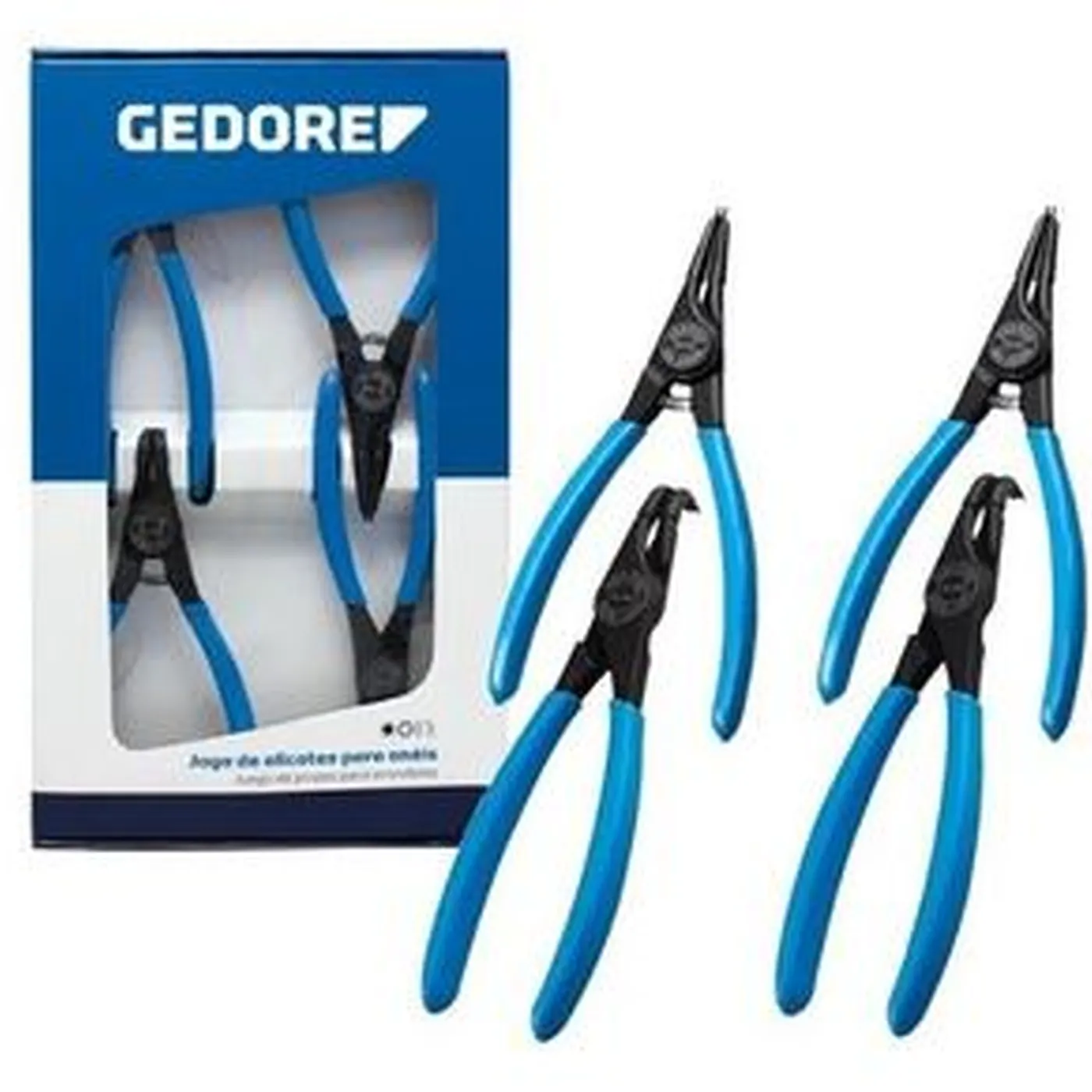 Jogo de alicates para anéis de 7", para anéis externos, internos, ponta reta e ponta curva Gedore.
