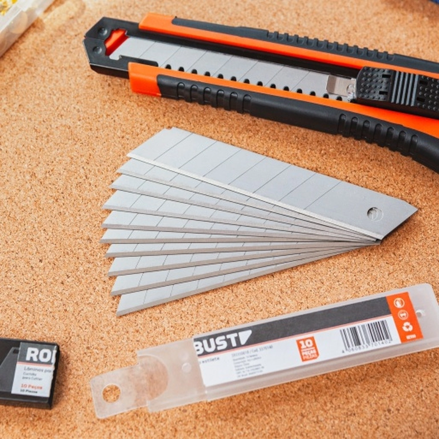 - A linha Robust também oferece a reposição das lâminas através de um conjunto com 10 peças. A substituição é de fácil manuseio e as peças são vendidas em um estojo que garante a proteção e a segurança as lâminas. Para quem tem um estilete, ter as lâminas são essenciais para aumentar a durabilidade e uso da ferramenta.