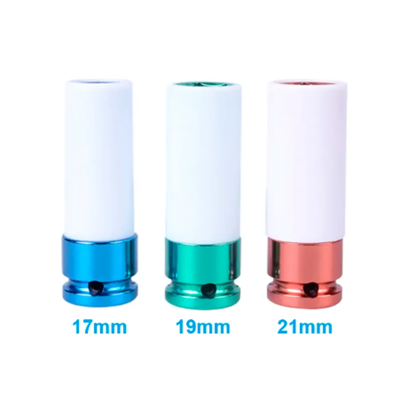 azul (17 mm), verde (19mm) e vermelho (21 mm).