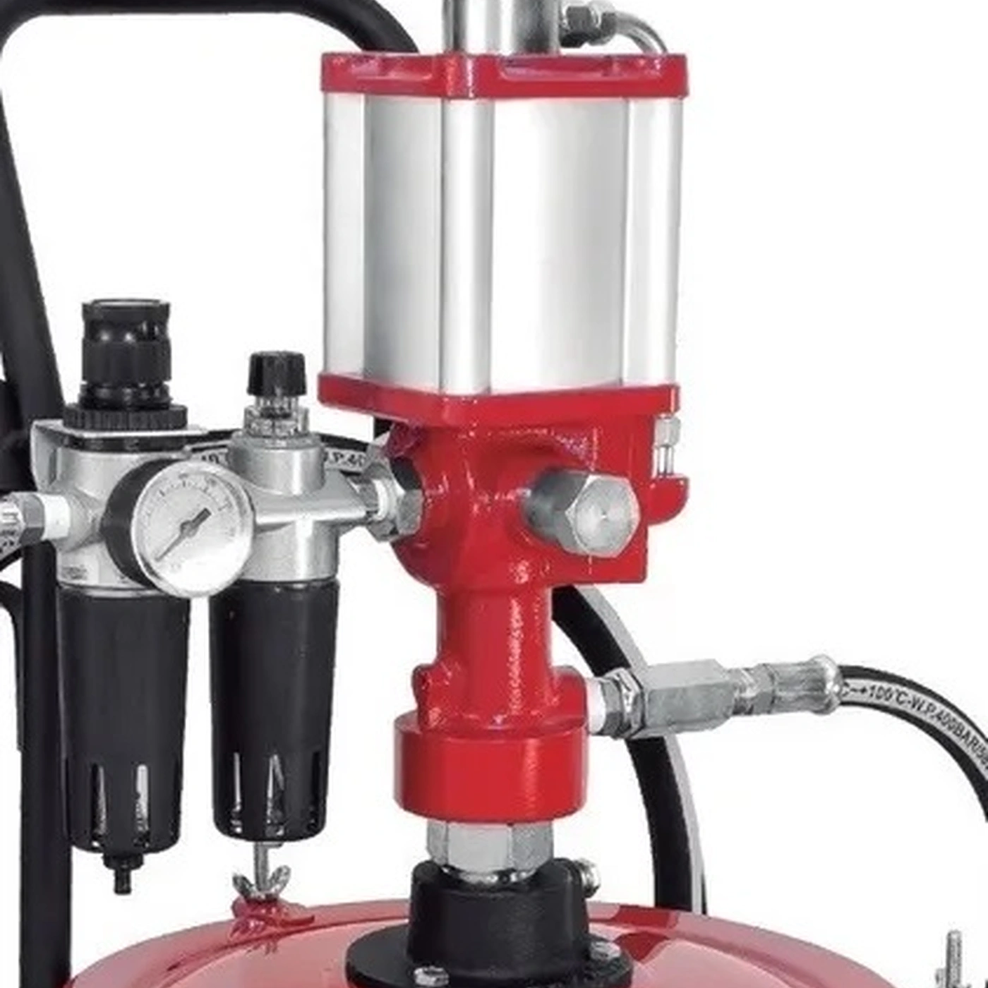 Propulsora pneumática para graxa adaptável em balde de 20kg. Com rosca de entrada de ar de 1/4"NPT